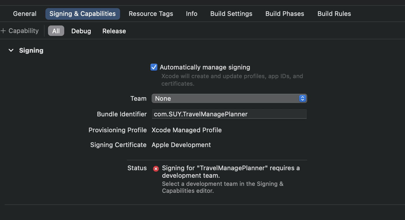 3. Team 부분에 None -> 내가사용하는 계정으로 변경